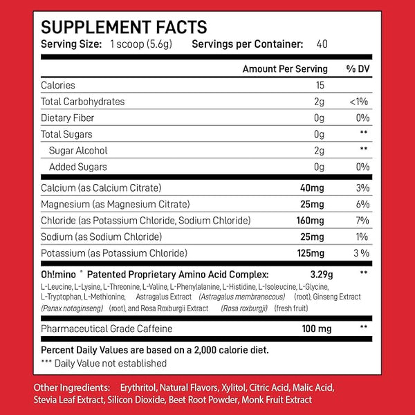 Simply mix 1-2 scoops (1 scoop = 7g) with 6-12oz of cold water for a refreshing pre-workout boost. Oh!mino is also effective on rest days for enhanced recovery.