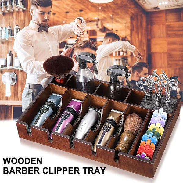 Noverlife Wooden Barber Clipper Tray Anti-slip Hairdresser Clipper Organizer Wood Barber Table Collector