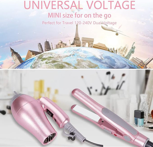 Product descriptionDual voltage£º 125v/250vRated frequency£º 50/60HZPower consumption£º 1200WCord Length£º 4.9ftProduct Dimensions£º 5.3 x 2.6 x 7.5 inItem Weight£º 1.26lb1x Mini blow dryer1x Mini straightener1x Concentrator nozzle1x EU Plug Adapter1x Voltage...