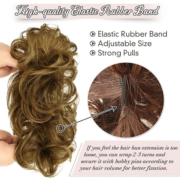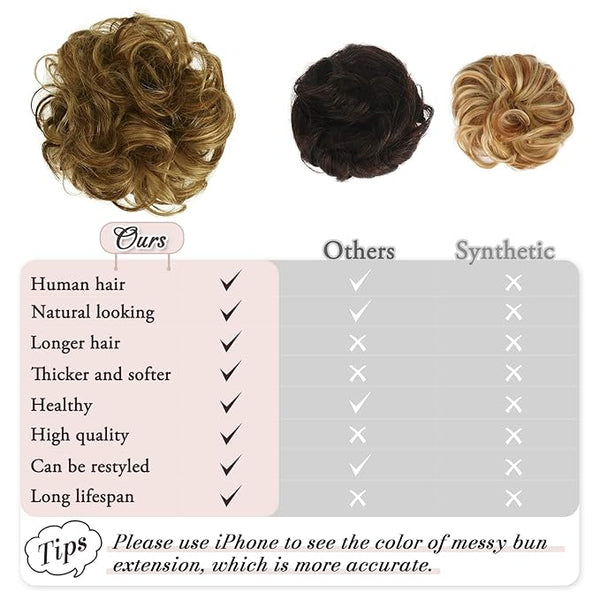 RUWISS messy bun hair piece is made of 100% real human hair. With natural textured hues, more longer soft hair, perfect curl shape, comfy elastic band, human hair bun extension perfectly blends with your original hair.