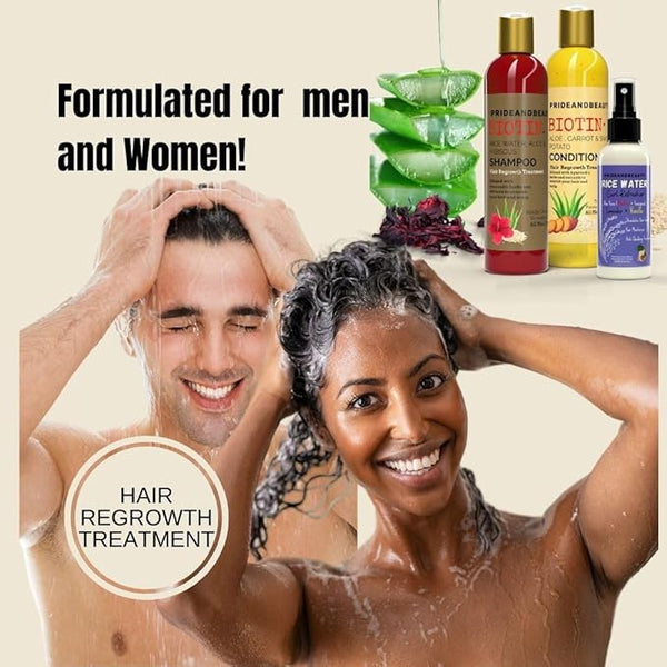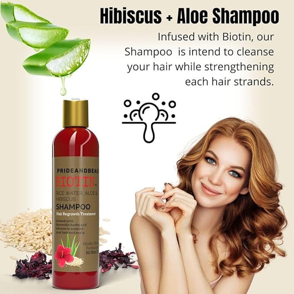 PRIDEANDBEAUTY, HANDCRAFTED ALL NATURAL AYURVEDIC INGREDIENTS SHAMPOO AND CONDITIONER FOR THICKER & FULLER HAIR. Our Hibiscus and Aloe Shampoo, have been infused with Biotin for maximum hair growth therapy. Regrow thicker and fuller hair. * IMPROVED HAIR APPEARANCE: Our Shampoo will restore your damage hair to healthy glossy looking hair. Say goodbye to dry hair and itchy scalp. Our Shampoo and Conditioner is packed with essential vitamins and nutrients that the scalp needs in order to produce new hair growth. Our exclusive formulation helps hydrate the scalp, reduce dryness, brittle strands, and makes hair more manageable. * PROTECT & STRENGTHEN YOUR HAIR: Our Key Active Ingredients such as Hibiscus, Real Aloe Vera Leaf, Biotin, Essential Oils, and our DHT Herbal Proprietary Blend protect your hair from further damage caused by external factors that lead to thinning hair.