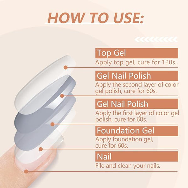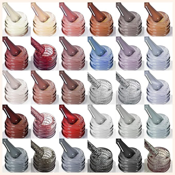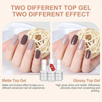 Package Includes: 30 colors gel nail polish, 1pc foundation gel, 1pc matte top gel, 1pc glossy top gel