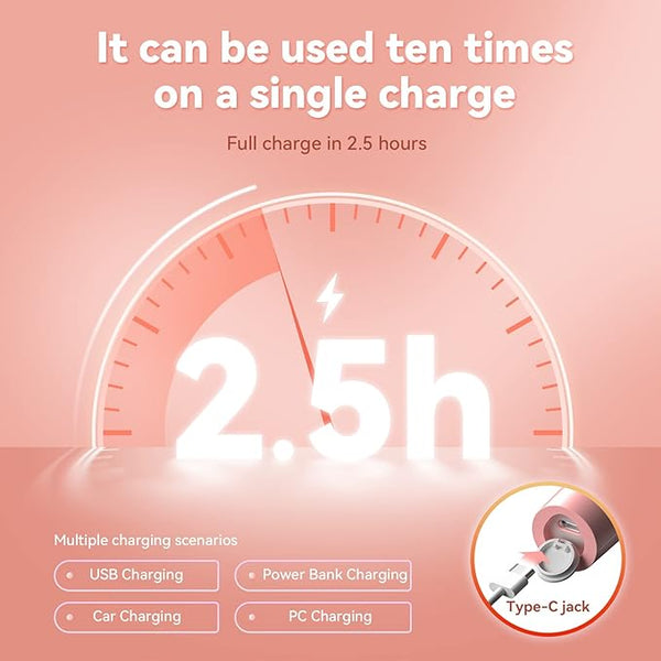 2.5 Hours Fast Charging:Plaque remover for teeth is Type-C socket USB charging, can be applied to rechargeable batteries, car, PC side charging, charging once 2.5 hours, can be used more than 10 times.