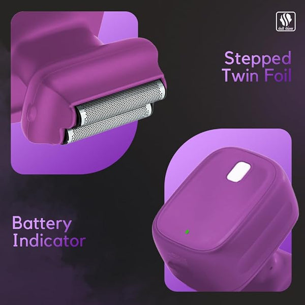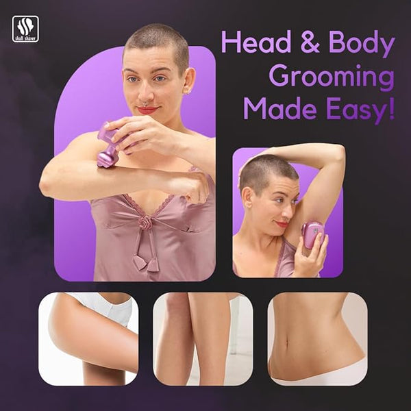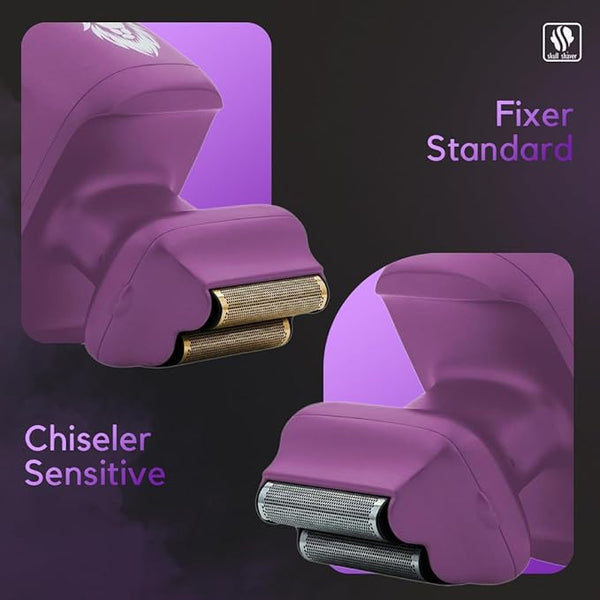 Experience the perfect feel and grip. Designed with our unique patented Skull Shaver handle, it fits seamlessly in your hand, providing a comfortable and secure grip. The versatile design offers multiple hand grips, allowing you to hold the indented ribs or use the unique between finger grip to reach difficult areas.