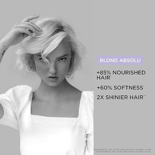 Use Blond Absolu Masque Ultra-Violet hair mask weekly to get rid of brassiness and unwanted undertones (your hairdresser can recommend the frequency of use depending on the bleach of your hair).
