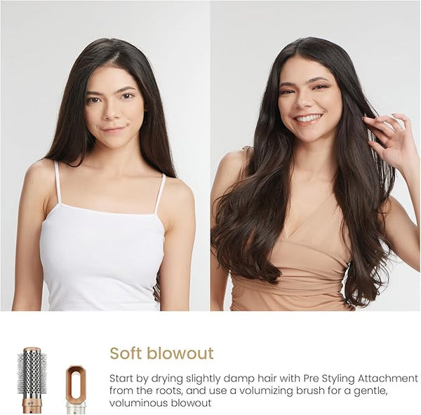Auto-wrap curling barrels that feature Coanda technology for effortless, heat-safe curls, achieving a salon-blowout effect always.