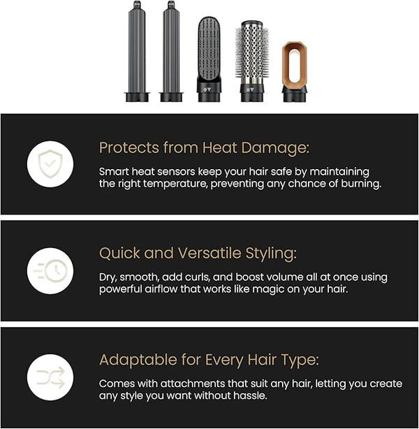 Includes 3 attachments: Hair Dryer for quick drying, Volumizing Brush for added bounce, and Smoothing Brush for straightening and smoothing.