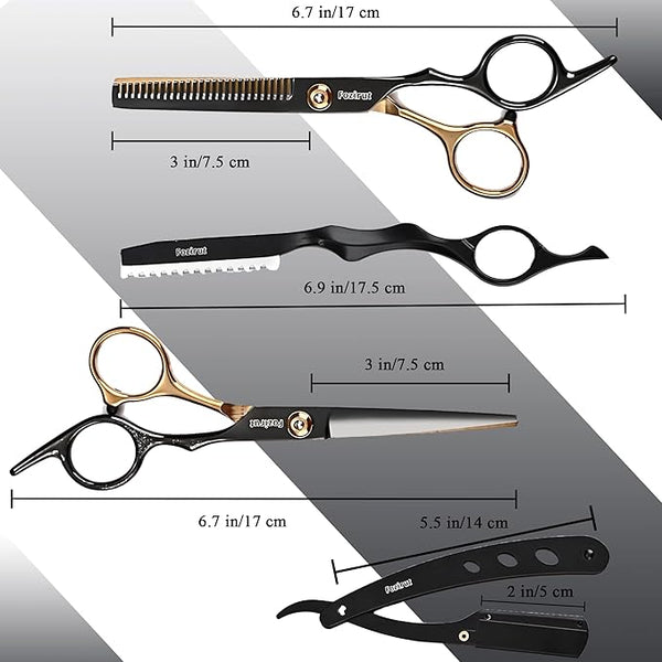 With a length of 6 inches, and safe smooth blade top design. Fozirut haircut scissors is safe and easy to use on men, women, the elderly, children, and dogs! With a sleek stainless-steel texture, our scissor reduces messy hair clutters as no hair gets caught in between its thinning blades, unlike other hair thinning scissors on the market.