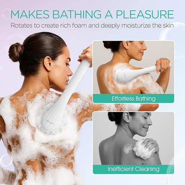 This exfoliating brush is specially designed for body cleansing. It is equipped with a powerful motor, which means that even if you press it hard, the bath brush will not stop spinning. This can help you achieve perfect body cleansing effect.