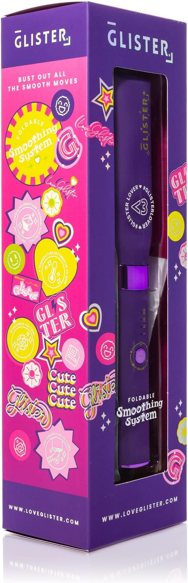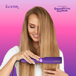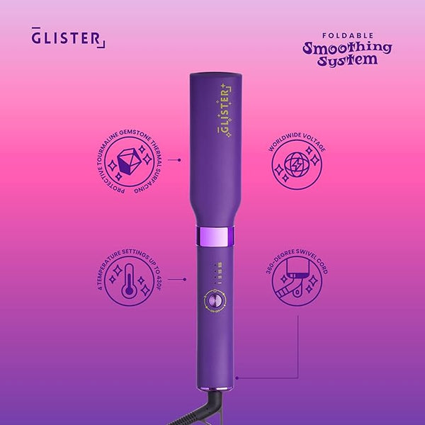 The Glister Advanced Foldable Smoothing Brush is engineered with cutting-edge, tourmaline-infused thermal surfaces that get hair straight fast while remaining easy on hair. Tourmaline technology generates far-infrared heat to do more with less - heating hair from the core outwards and enhancing moisture retention & shine with less friction and overall heat exposure. Designed with four temperature options shown on user-friendly LED buttons, you can adjust the heat to meet any hair type's specific needs. Our ergonomic, space-age design is as stunning as it is functional, made with chrome eye-candy embellishments and a foldable design that allows you to collapse this device for lightweight, compact storage and sophisticated portability and elegance. Finally, the day has come where you can achieve glossy, salon-quality looks in the time it takes to brush your hair.