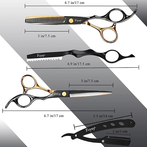 Fcysy hair shears are made from high-quality Japanese stainless steel. Which is heat resistant, corrosion resistant, rust resistant, colorfast. Haircutting scissors is tempered with precise blades and hand-sharpened cutting edges to evenly trim hair with ease, can trim hair wet and dry.