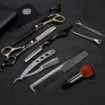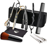 1 x Hair Scissors,1 x Thinning Shear,1 x Hair Texturizing Cutting Razor, 1 x Straight Edge Razor (Blade Included), 1 x Cleaning Cloth, 1 x Comb, 2 x Hairpin, 1 x Neck Duster Brush, 1 x Hair Scissors Screw Adjustment, 1 x Leather Bag. The hair cutting kit meets all your hair cutting and styling need.
