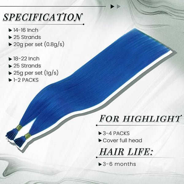 Product descriptionColored Hair ExensionsBrighten up your life with gorgeous colors!RUNATURE Blue Hair Extensions Human Hair for HighlightI Tip Hair Extensions Human HairBy wearing small colored hair extensions, you can achieve...