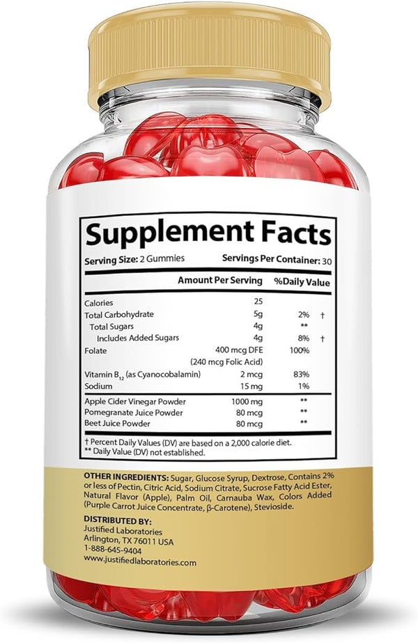 Our proprietary blend of apple cider vinegar gummies contain beet root, vitamin b12 and folate.