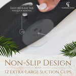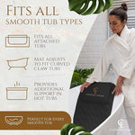 Nope, it sticks right where you put it with these big suction cups. And there're tabs to yank it off when you're done. No sliding around when you're getting in or out.