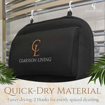 Definitely! It's designed with quick-drying fabric that resists odours and includes a hook for easy air-drying. Additionally, it comes with a special bag, specifically for safe and convenient machine washing.