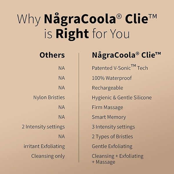 Product descriptionOur Brand StoryFeatured inNagraCoola Face ScrubbersV-SonicAction ModeSpinning & V-SonicWaterproofReplaceable BrushesTimer & PacerSmart Memory3Intensity Settings35.43*1.97*1.2 inchesSizes7.09*2.36*2 inchesV-SonicAction ModeV-SonicWaterproofReplaceable BrushesTimer & PacerSmart Memory3Intensity Settings55.43*1.97*1.2 inchesSizes5.75*2.13*1.2 inchesV-SonicAction ModeV-SonicWaterproofReplaceable BrushesTimer & PacerSmart Memory3Intensity...