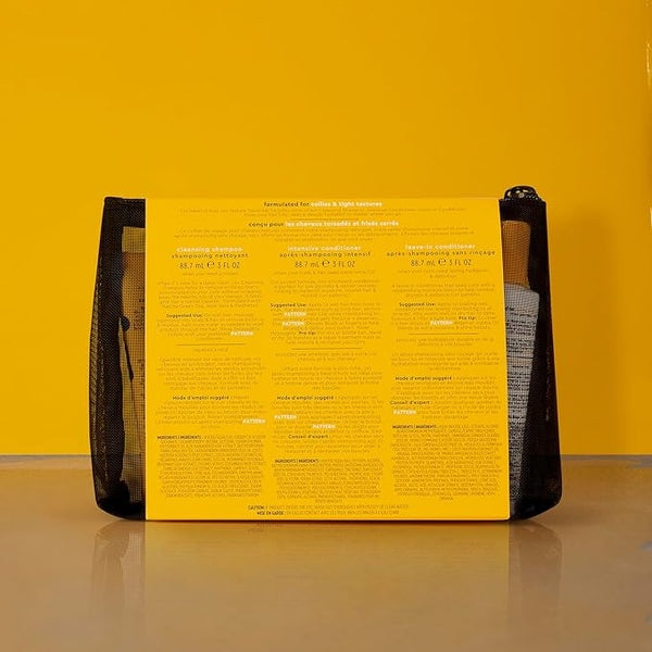 The Curl Cocktail Kit includes 3oz minis of the Leave-In Conditioner, Styling Cream and Curl Gel plus a mesh zip cosmetic pouch for styling on-the-go.