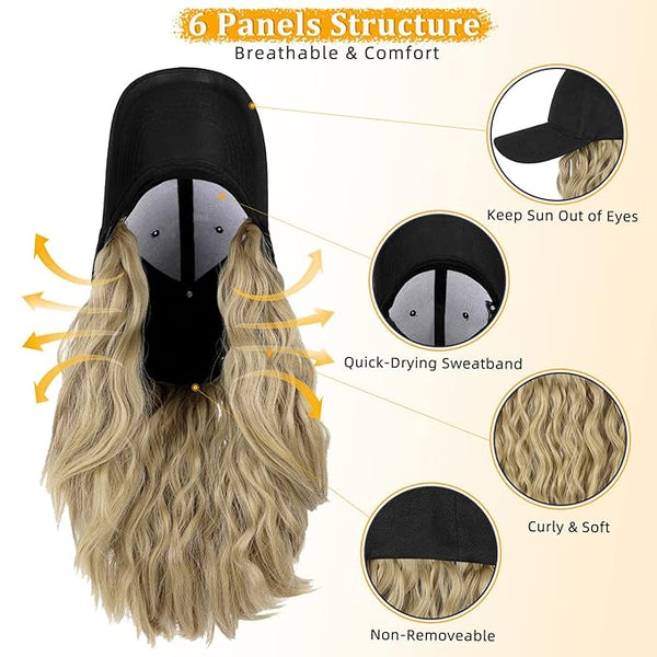 Lansigreen baseball cap with hair have a natural look that gives you charm and confidence.Thick wavy hair extensions are easy to quickly create different looks in minutes.Our wig hat has one size with good stretch,adjustable strap back closure for a comfortable fit to your head,protect yourself from the sun.