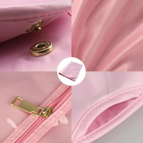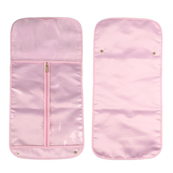 Made of durable satin silk and transparent plastic with zip-up closure