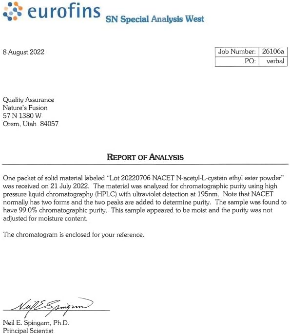 *Glutathione helps support optimal cellular health for brain, lung, and all other organs and tissues. NACET is an off-white powder with a strong Sulphur smell, which is one of the reasons why it works so well. The esterification process of NAC now uses sulphuric acid as a catalyst, thereby increasing the bioavailability by 20x. It's 10x more bioavailable than liposomal glutathione, making it an extremely powerful anti aging supplement. NACET can increase Glutathione levels in cells by over 300%, where NAC only increases it by 10%.**