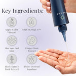 Made from naturally derived sustainable and high-grade ingredients our formula marries the potency of Apple Cider Vinegar extract with REJUVENIQE S to give you an effective product. This hair rinse is free from harsh substances or other additives and is safe on your delicate locks.