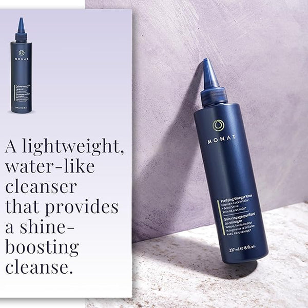 Experience a one-of-a-kind hair detox with Monat's Purifying Vinegar Rinse, a luxurious and rejuvenating addition to your hair care routine that helps detoxify your scalp and hair, providing a fresh start for your locks.
