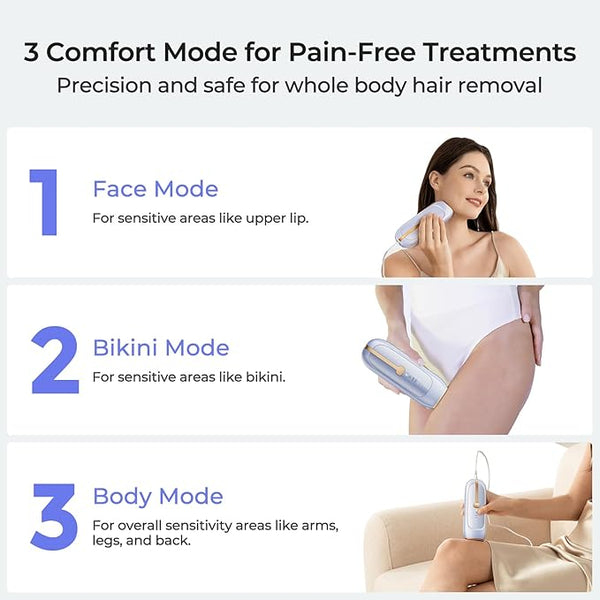 Unlike most ice cooling panels or hair removal devices that do not feature sapphire, LUBEX utilizes Sapphire Ice-cooling technology ensures painless and unparalleled comfort throughout your sessions at home. Designed for those with sensitive areas like bikini, upper lip and face.