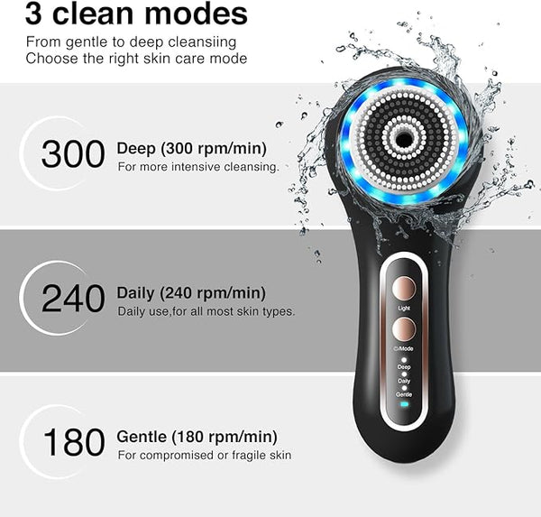 1.Wet your face and the brush head.2.Apply cleanser on the brush head.3.Move the brush in a slow,circular motion.4.Wash the face with clean water
