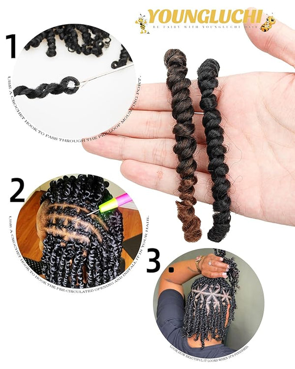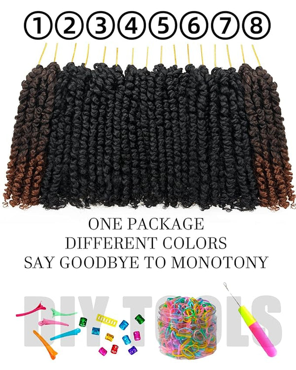 You can get 8 packs passion twist crochet hair and 1 crochet needle+100 rubber brands +10 hair accessories+5 colorful hairpin.