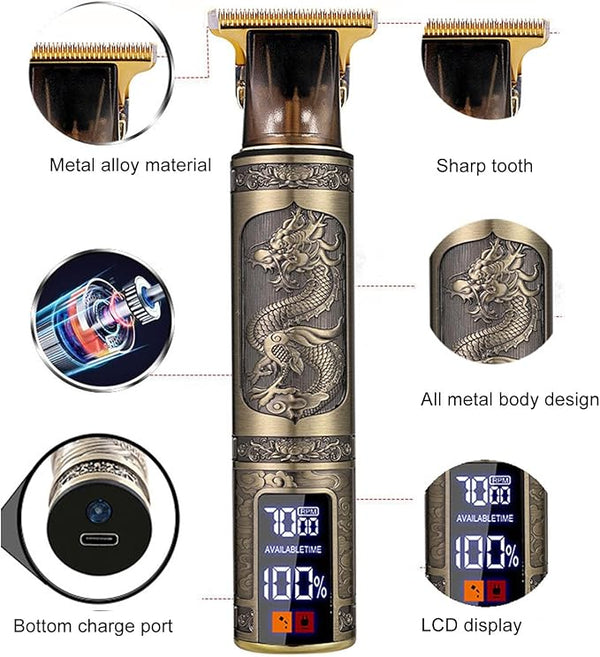 Engraved Dragon Hair Trimmer with USB Charging, Efficient Grooming, Quiet, Strong Copper Motor forStandby Haircut