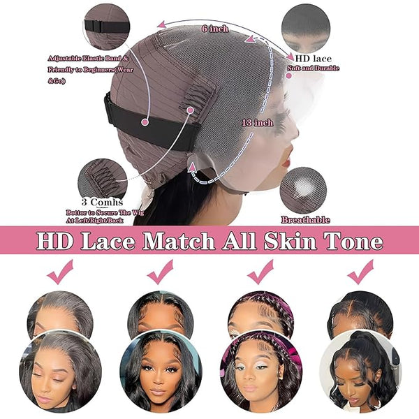 1¡¢13x6 Larger lace area, more breathable and lighter, say goodbye to the stuffy feeling, allows every pore on the scalp to breathe freely
