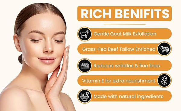 Nourishing & Hydrating: applying beef tallow on skin leaves it soft, and soft: face & body moisturizer.