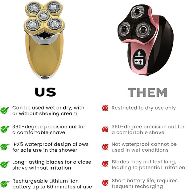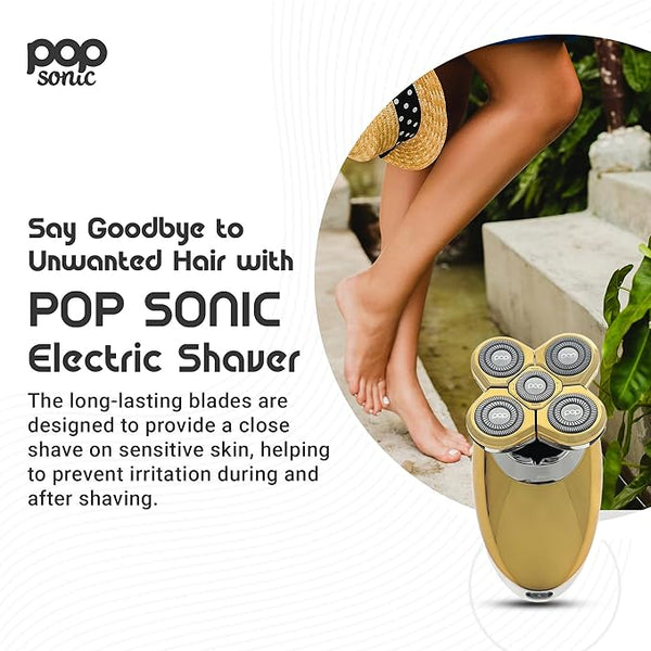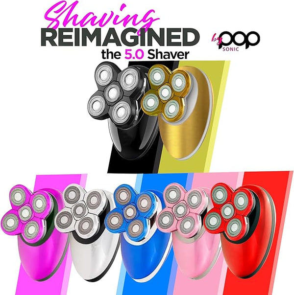 Introducing the 5-in-1 Pop Sonic Purple Electric Shaver for women. With 5 shaving heads, it offers wet or dry use, precise 360-degree cutting, and IPX5 waterproofing. Ergonomic design ensures comfort, while rechargeable Lithium-ion battery lasts up to 60 minutes. Easy maintenance with a pop-off head for cleaning. Enjoy smooth shaving on legs, arms, face, and bikini areas effortlessly!