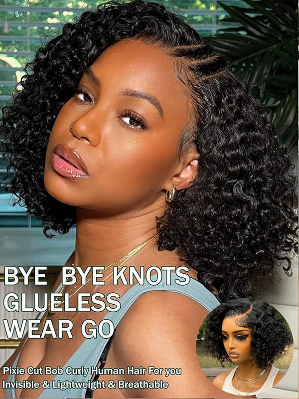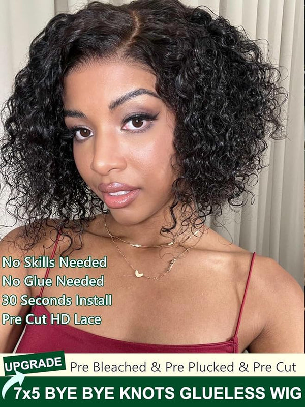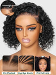 KLAIYI Bye Bye Knots Glueless Wig Pre Cut Lace Bob Curly Wig Natural Color