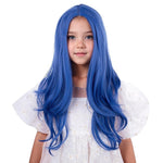 Edivd Long Dark Blue Wavy Middle Part Wig
