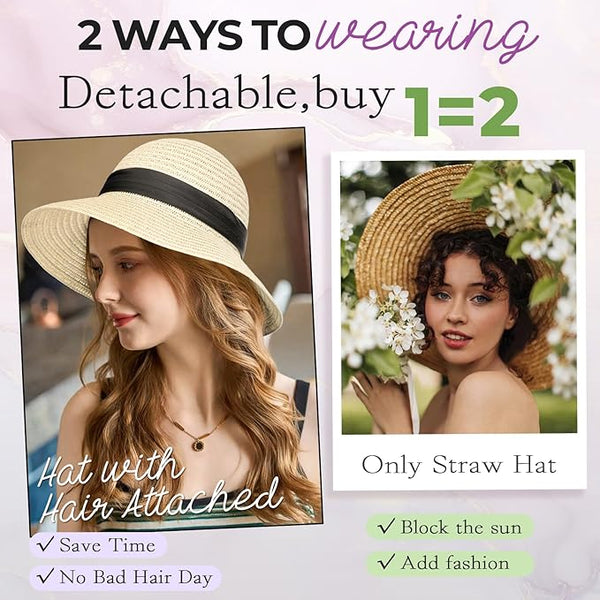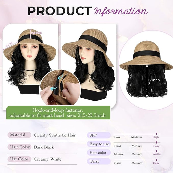 Product descriptionSun Hat Protect YouHat Wig Give You Perfect Hairstyle InstantlyFor Many OccasionsTry Different Wearing Ways