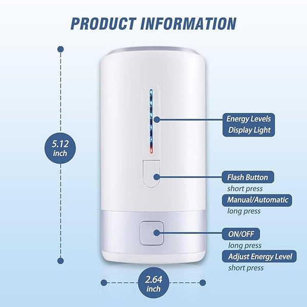 5 different energy levels to suit different skin types and areas. Two flash modes design can satisfy your demands on different hair removal parts.
