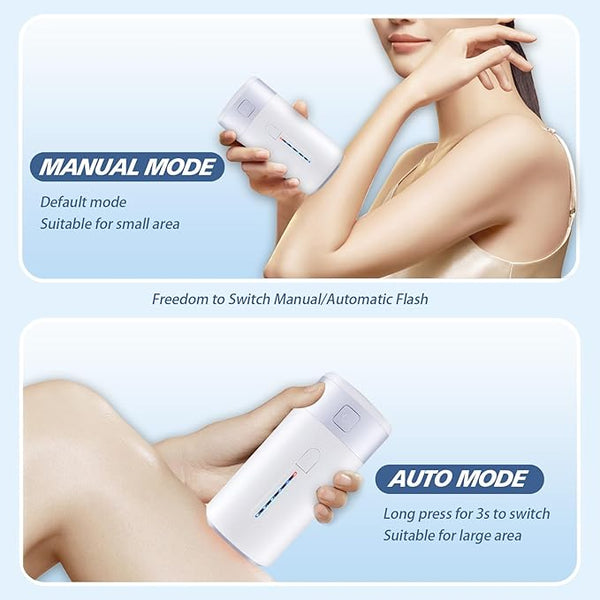 Manual mode for precise hair removal in small areas; Automatic mode is more convenient for large area hair removal.