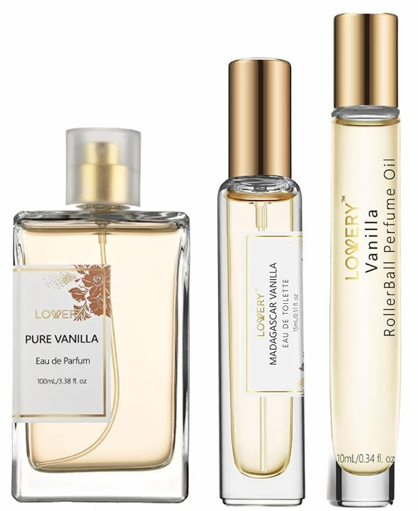 Pure Vanilla Perfume for Women Fragrance Set - 3.38fl oz Womens Perfume, Long Lasting Eau de Toilette Spray & Rollerball Perfume Oil - Clean & Natural, Gifts for Wife Mom Women, Birthday Gifts