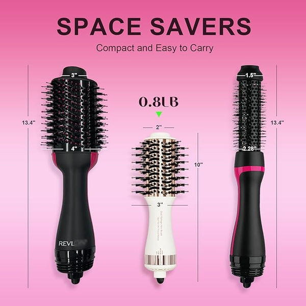 Olaermoso hair dryer brush equipped with 2" oval-shaped barrel for seamless performance and long-lasting styling results. Besides, it is 50% smaller than comparable products, making it easy to carry anywhere.