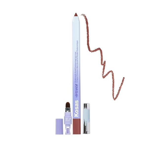 Kosas Hotliner Retractable Lip Liner Pencil with Built-In Brush & Sharpener - Easy Contouring, Hydrating, Long-Lasting- Pigmented Creamy Texture for Plumping Lips - Hyaluronic Acid & Konjac -