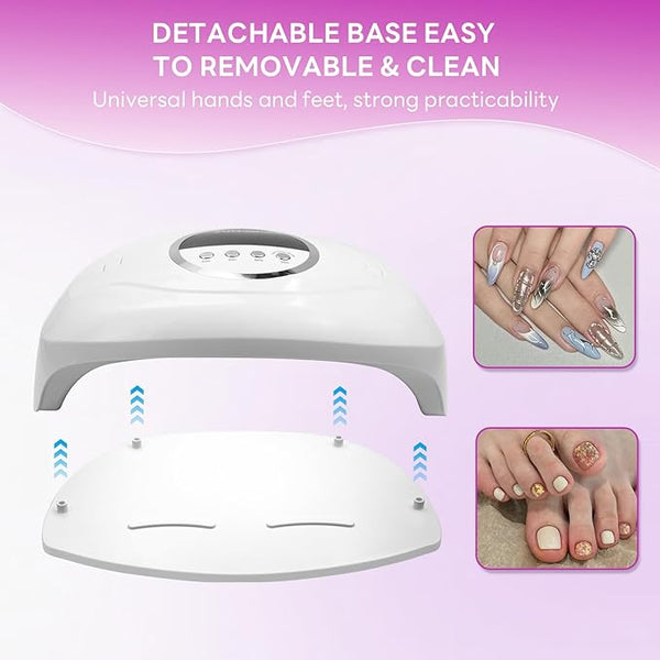 The nail lamp has a detachable tray so that you can cure your toenails as well as fingernails. It is easy to clean.