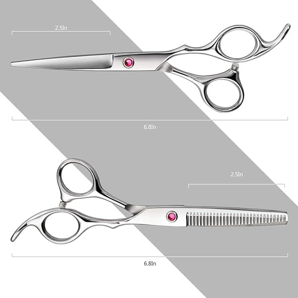 Made from premium stainless steel, these scissors ensure lasting sharpness and durability. The adjustable screw provides custom tension, while the ergonomic designd deliver comfortable use during every trim.