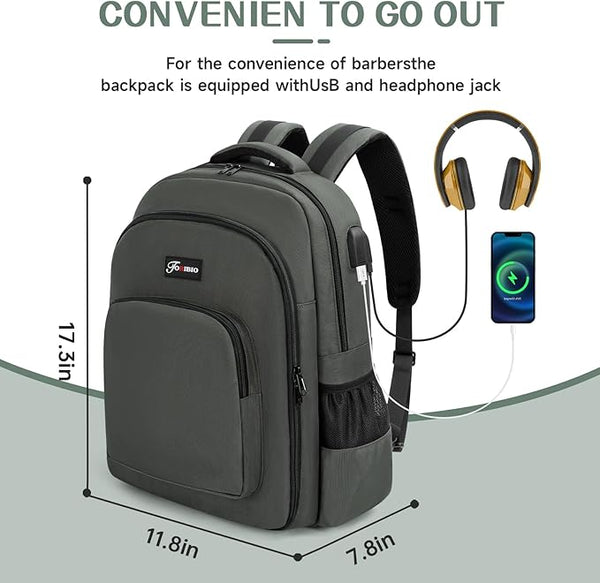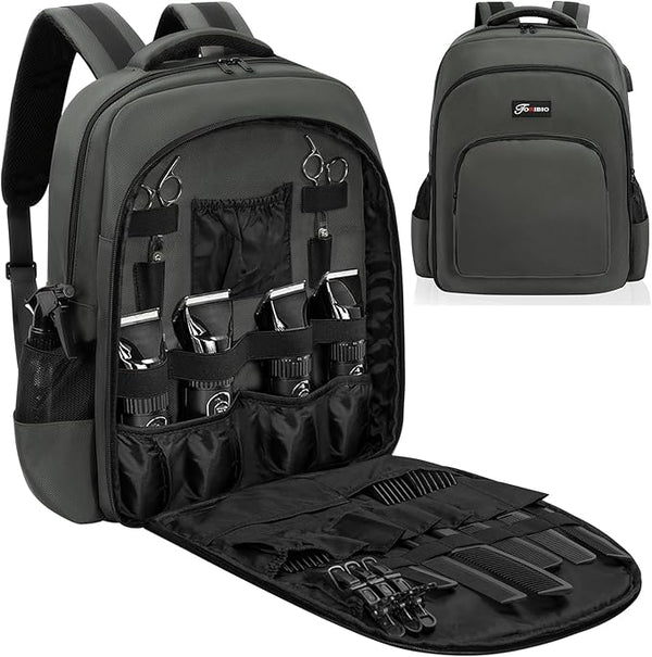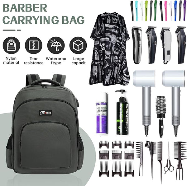 Product descriptionExternal Charging PortVented Side Bottle PocketPadded Reinforced HandlesLockable Dual Zipper AccessBarber Backpack for MenPower clippers on the move! Integrated cable port keeps tools charged without unzippingStay hydrated between clients!...