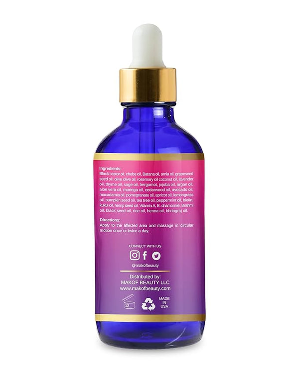 Our revolutionary formula combines the nourishing power of 34 carefully selected oils, all in one bottle. Each oil is chosen for its unique ability to promote hair growth, strengthen strands, and reduce breakage. This potent blend penetrates deeply to nourish the scalp, stimulate hair follicles, and support natural, healthy hair growth from root to tip. Additionally, it helps improve scalp health, hydrate dry hair, and add a natural shine. Perfect for anyone looking to boost hair growth and achieve thicker, fuller hair, this multi-oil formula offers a holistic solution that delivers visible results with regular use. Experience the transformative power of nature¡¯s most effective oils?your journey to healthier, longer hair starts here at MAKOF BEAUTY