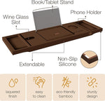 SereneLife Bathtub Tray - Expandable Bath Tray for Tub, Adjustable Bamboo Caddy with with Non-Slip Handles, Device Holder and Wine Glass Slot for Bathing Luxury (Standard, Soft Back, Gift Set)