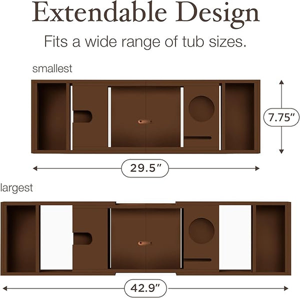Wooden Bathtub Tray - Foldable & Expandable Bamboo Bath Tray for Tub with Wine Holder, Book & Tablet Stand - Bath Caddy Tray for Bathtub, Spa Bath Accessories, Tub Tray Table, (Brown)