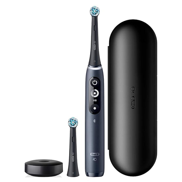 Oral-B iO Deep Clean + Protect Rechargeable Electric Toothbrush Black with a iO Series 7 Toothbrush 2 Replacement Brush Heads and a Charging Travel Case