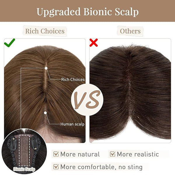 Product descriptionRich Choices Real Human Hair Topper For Womenhuman hair topper100% Human Hair Topper Details ShowNOTE: Before Wearing, Please Revive the Hair As This Will Make It Look More Natural!Ultimate...